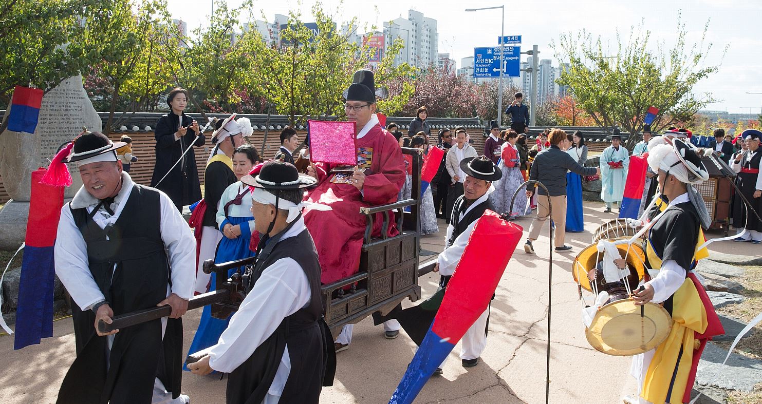 이 날 행사는 개인적인 사정 때문에 결혼식을 올리지 못한 다문화 가정 3쌍을 선정, 식전행사로 풍물놀이를 시작으로 기러기를 전하는 ‘전안례’, 부부로서 하늘과 땅에 고하는 ‘서천지례’, 일생토록 사랑할 것을 서약하는 ‘서배우례’, 신랑과 신부가 천생배필의 인연임을 확인하고 두 사람이 표주박 잔에 술을 나눠 마시며 일심동체가 되었음을 알리는 ‘근배례’ 순으로 혼례가 진행됐다.