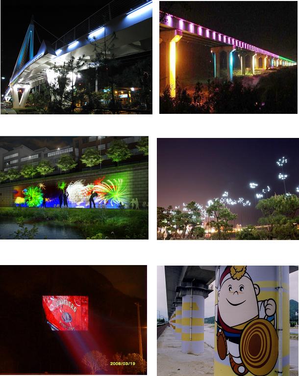 구체적 내용을 살펴보면 육교와 옹벽 등에 자연경관을 이용하여 미디어아트 조명 컨텐츠를 구성하여 아름답고 특색있는 야간경관을 창출하고 경관조명을 이용하여 곳곳에 아름다운 야경을 연출할 방침으로 기존 시설물의 훼손이 최소화 되는 범위에서 환경친화적인 문화․예술작품을 연출할 예정이다.