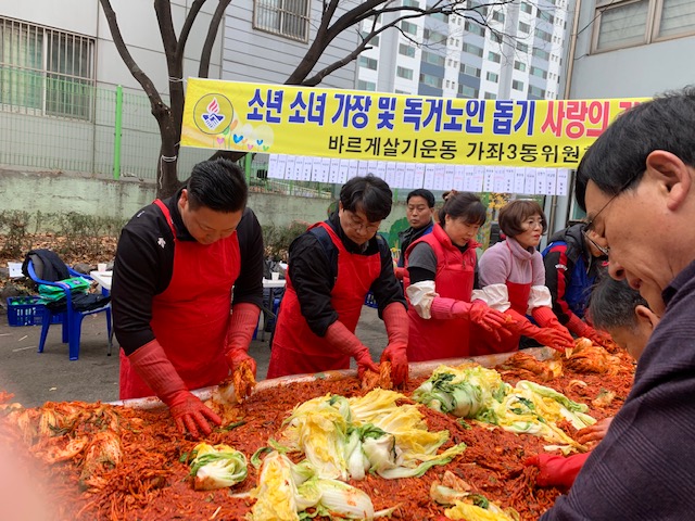 이 날 사랑의 김장나누기 행사에는 이재현 서구청장을 비롯한 이학재 국회의원, 권동식 구의원, 한승일 구의원, 바르게살기위원 등 30여명이 참여한 가운데 300포기의 김장김치를 정성껏 담가 주변의 어려운 이웃에게 전달하였다.
