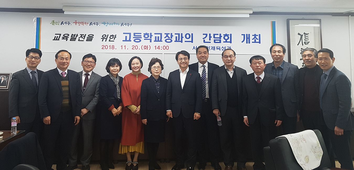 한편 관내 인문고등학교 교장선생님들과 함께 서구 교육환경개선과 교육발전을 위한 다양한 방안과 의견을 나누고 과밀학급 해소 등 교육현안사항에 대해 논의하는 소통의 자리가 되었다.