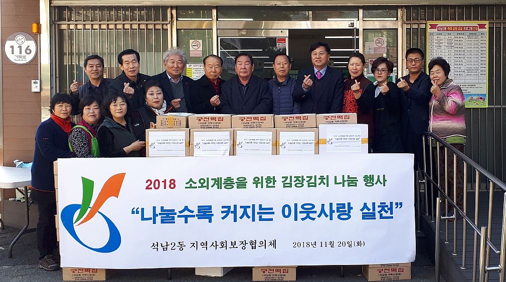 인천 서구(구청장 이재현) 석남2동 지역사회보장협의체(동장 한상옥, 공동위원장 이형순)는 지난 20일 동 행정복지센터 주차장에서 ‘2018 소외계층을 위한 김장김치’ 사업을 실시했다.