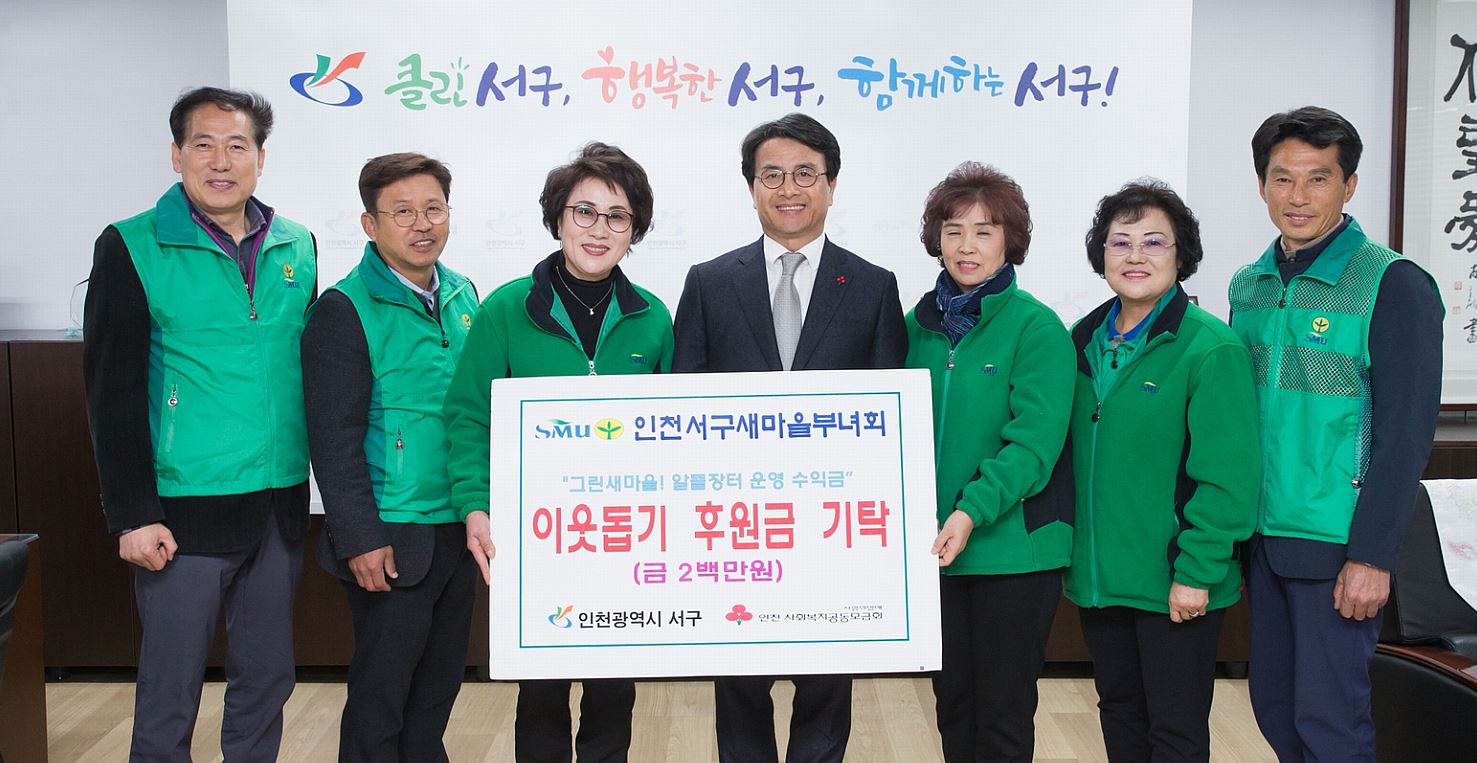 인천서구새마을회는 서구새마을부녀회(회장 이명화) 주관으로 지난 21일 서구청에 이웃돕기 후원금 이백만원을 기탁했다.
