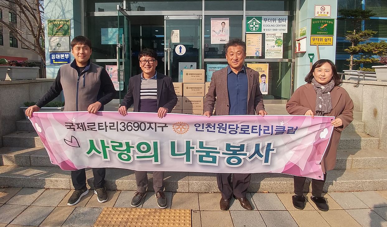 인천원당로타리클럽은 관내 저소득 독거노인세대 주거환경 개선사업, 난방용품 지원 등 관내 어려운 이웃들을 위해 꾸준한 봉사 활동을 펼치고 있다.
