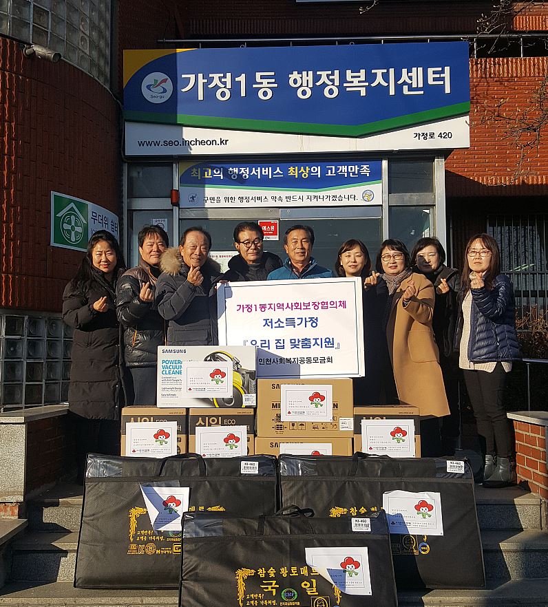 인천 서구(구청장 이재현) 가정1동 지역사회보장협의체(위원장 임은숙, 공동위원장 이훈희)는 지난 12일, ‘우리 집 맞춤지원’ 사업실시로 가정1동 저소득가정에 온수매트와 전기난로, 전자렌지 등 가전제품을 지원했다.
