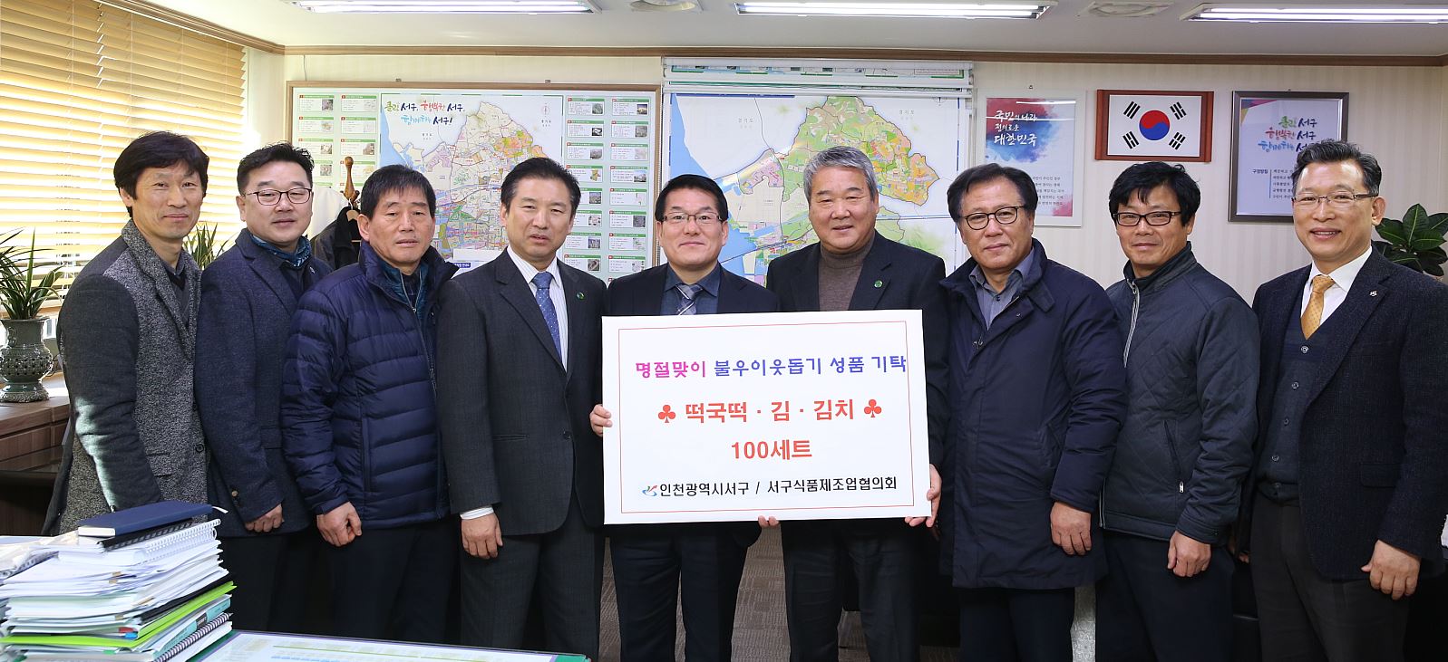민족 대명절 설을 맞이해 ()인천서구식품제조가공업협의회(회장 은남푸드 대표 김은남)는 지난 24일 관내 사회복지 시설과 소외계층을 위한 떡국 떡, 김과 김치 등 300만원 상당의 성품을 서구청에 전달했다.