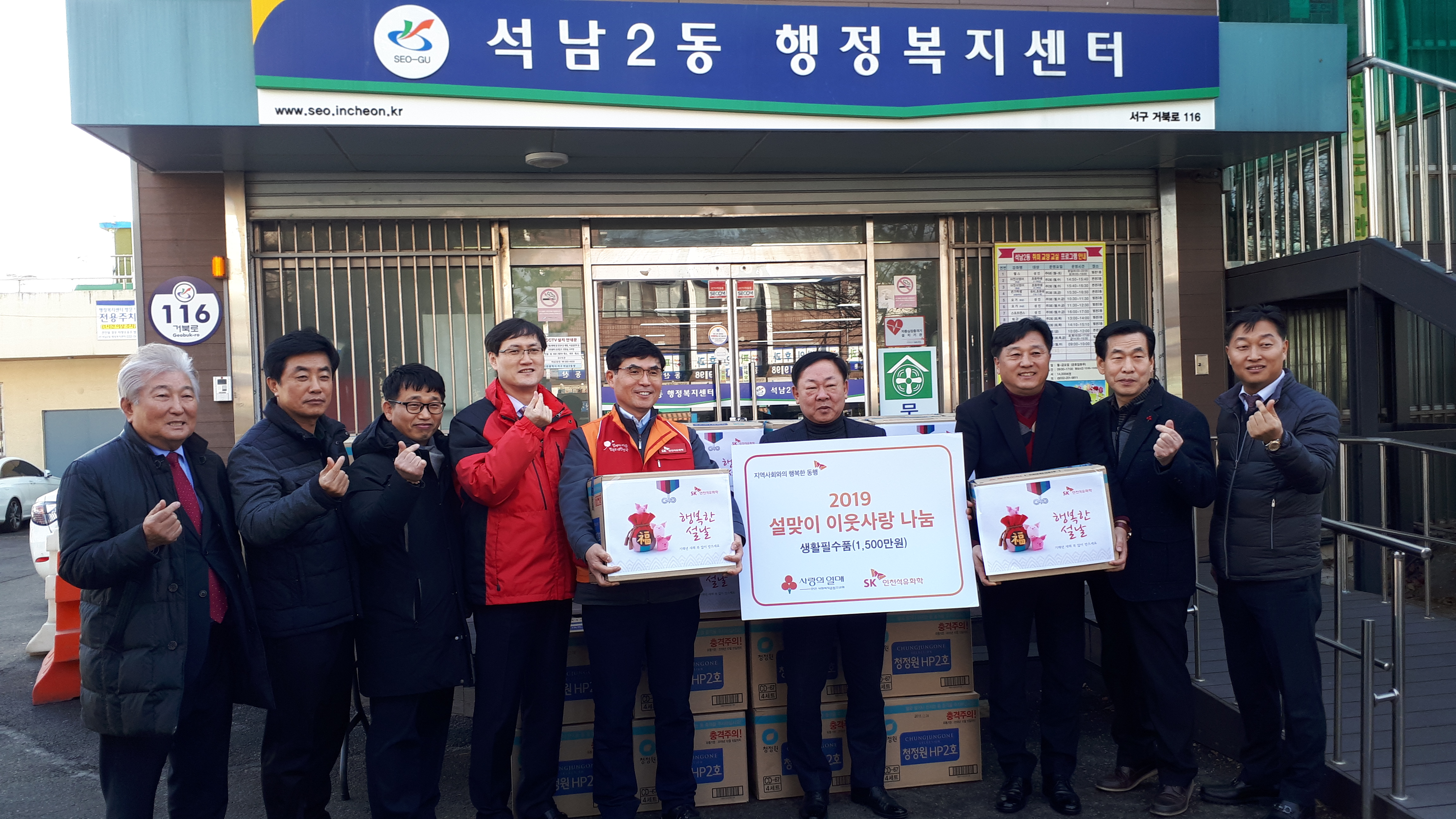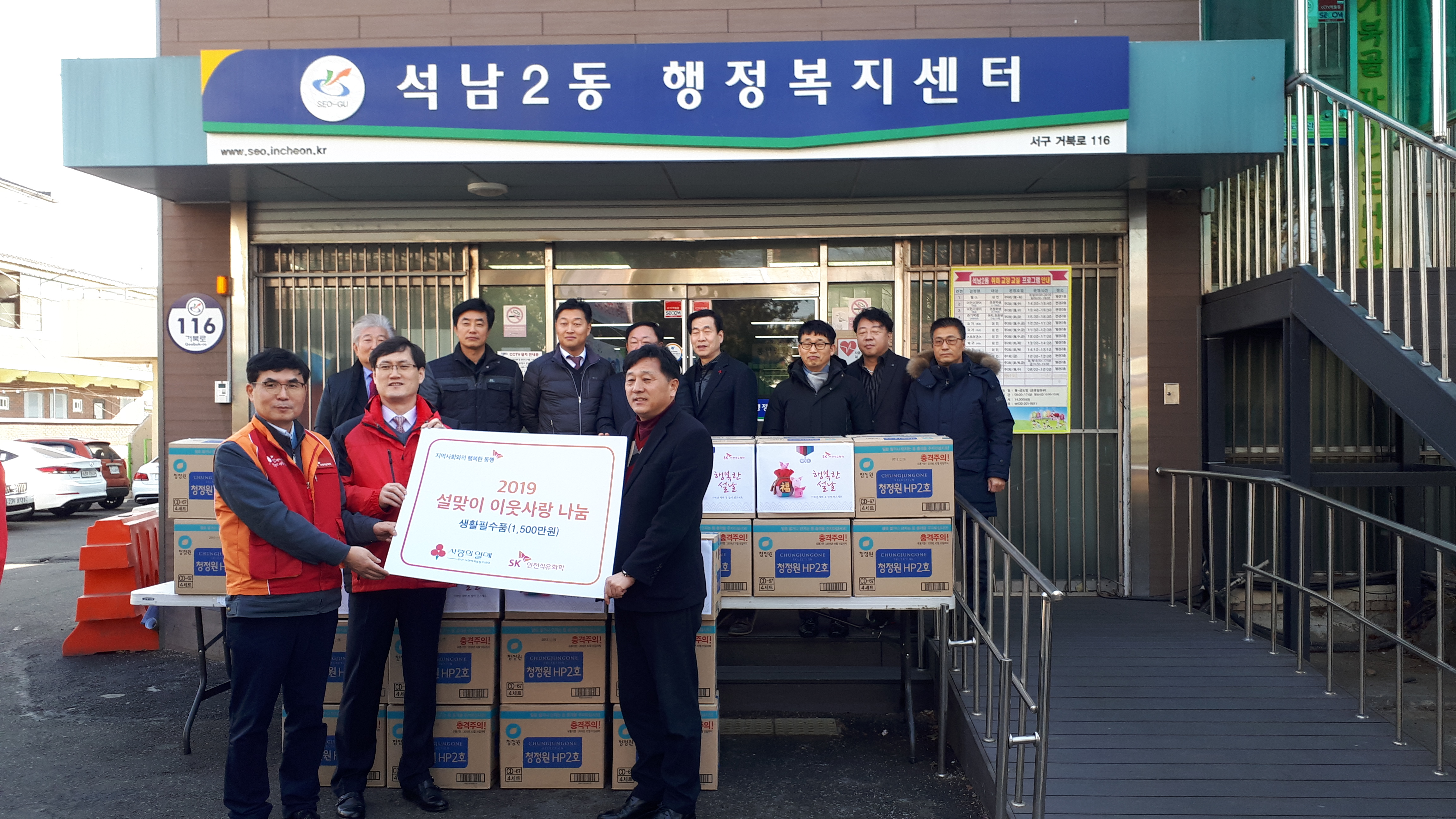 SK인천석유화학(대표이사 최남규)과 인천사회복지공동모금회(회장 정명환)은 민족 고유의 명절인 2019년 설을 맞이하여 소외되고 어려운 이웃들과 따뜻한 온정을 나누기 위해 지난 23() 석남2, 석남1, 신현원창동에 1천오백만원 상당의 생필품 세트를 전달하였다.