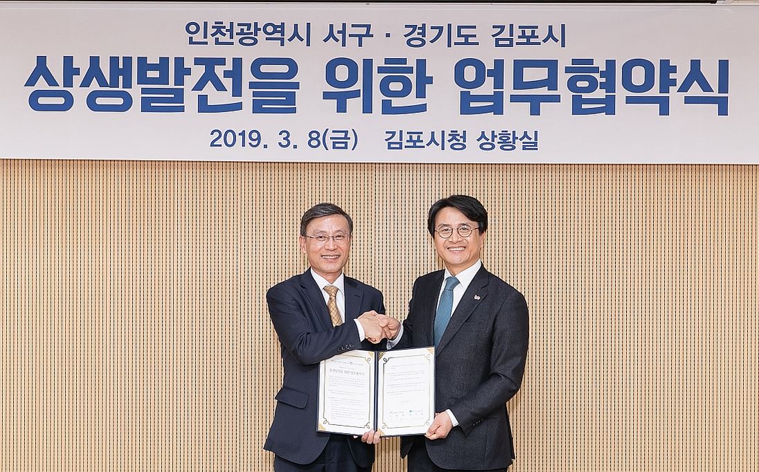 인천 서구(구청장 이재현)와 경기 김포시(시장 정하영)가 지리적 경계 등으로 인한 여러 가지 제약요인을 극복하고, 공동 문제에 대한 협업관계를 구축해서 동반 성장발전방안을 모색하기 위한 협약을 지난 8일 개최했다고 밝혔다.