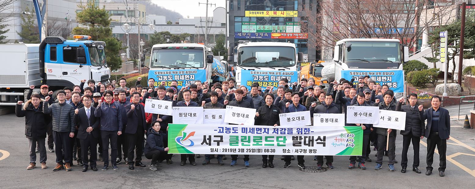 ‘서구 클린로드단’은 구 청소차량 15대, 시 청소차량 8대, 사업장과 공사현장 살수차 38대, 총 61대(8개조 운영)로 구성됐으며, 미세먼지 예비 저감조치 및 비상 저감조치 발령 시 관내 주요도로(8개 구간)에서, 하루 두 차례(오전10~12, 오후14~16시) 책임 관리구간 도로를 일제히 살수 청소해 미세먼지를 낮춰나간다.