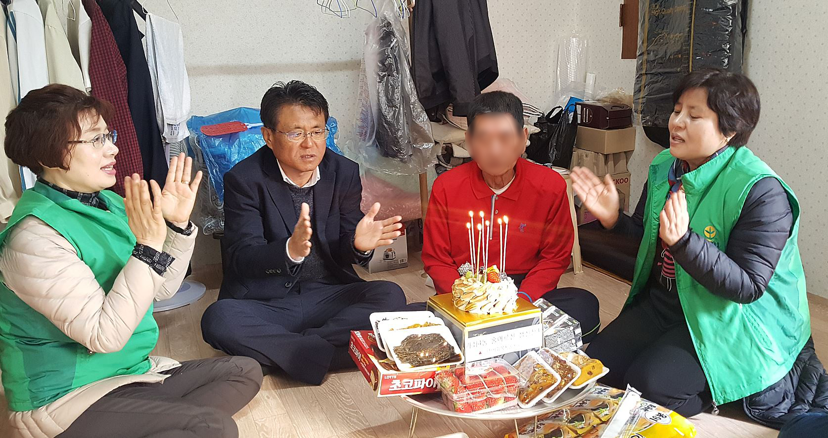 홀몸어르신 가정방문 생신상 봉사는 2012년부터 어르신 360명(1,800만원)에게 지원해 드리고 있으며, 어르신 한분 한분의 생일당일에 동장 및 새마을부녀회와 맞춤형복지팀 직원이 방문해 어르신의 건강과 안부를 묻고 말벗을 해드리며 든든한 울타리가 되어 드리고 있다.