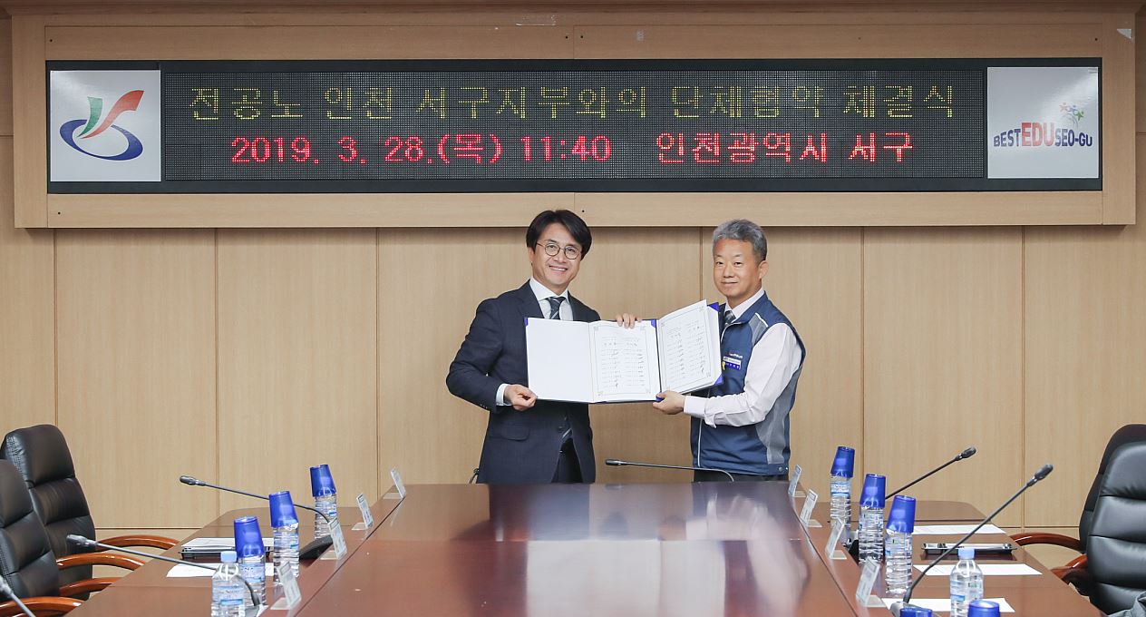 인천 서구(구청장 이재현)과 전국공무원노동조합 인천지역본부 서구지부(지부장 우재철)는 지난 28일 구청 대상황실에서 단체협약을 체결했다고 밝혔다.