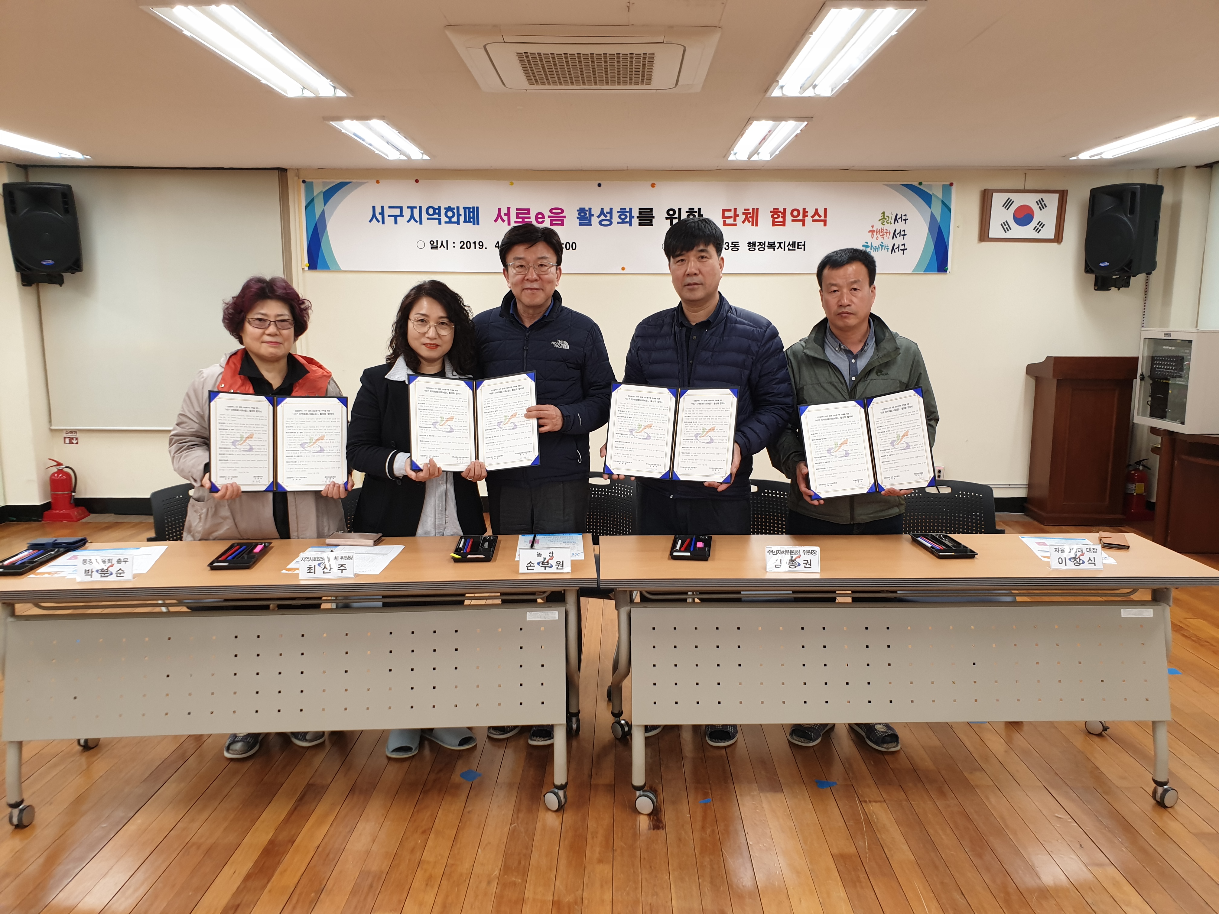 인천광역시 서구 석남3동(동장 손부원)은 지난 4월 18일 석남3동 행정복지센터와 주민자치위원회(위원장 김종권), 통장자율회(회장 강흥옥), 자율방범대(대장 이창식), 지역사회보장협의체(위원장 최선주) 4개 자생단체와 서구 지역화폐 서로e음(이하 “서로e음”이라 한다) 활성화 협약을 체결하였다.