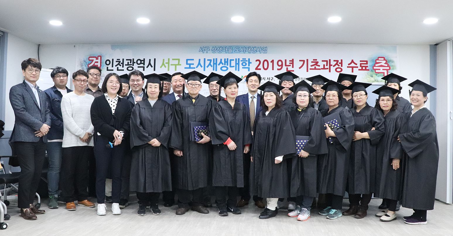 인천 서구(청장 이재현)는 지난 23일 서구 도시재생 현장지원센터에서 2019년 도시재생대학 기초반 수료식을 진행했다. 이번 도시재생대학 기초반 교육과정은 3월 21일부터 4월 23일까지 상생마을 주민협의체 및 분과위원을 대상으로 실시됐다.
