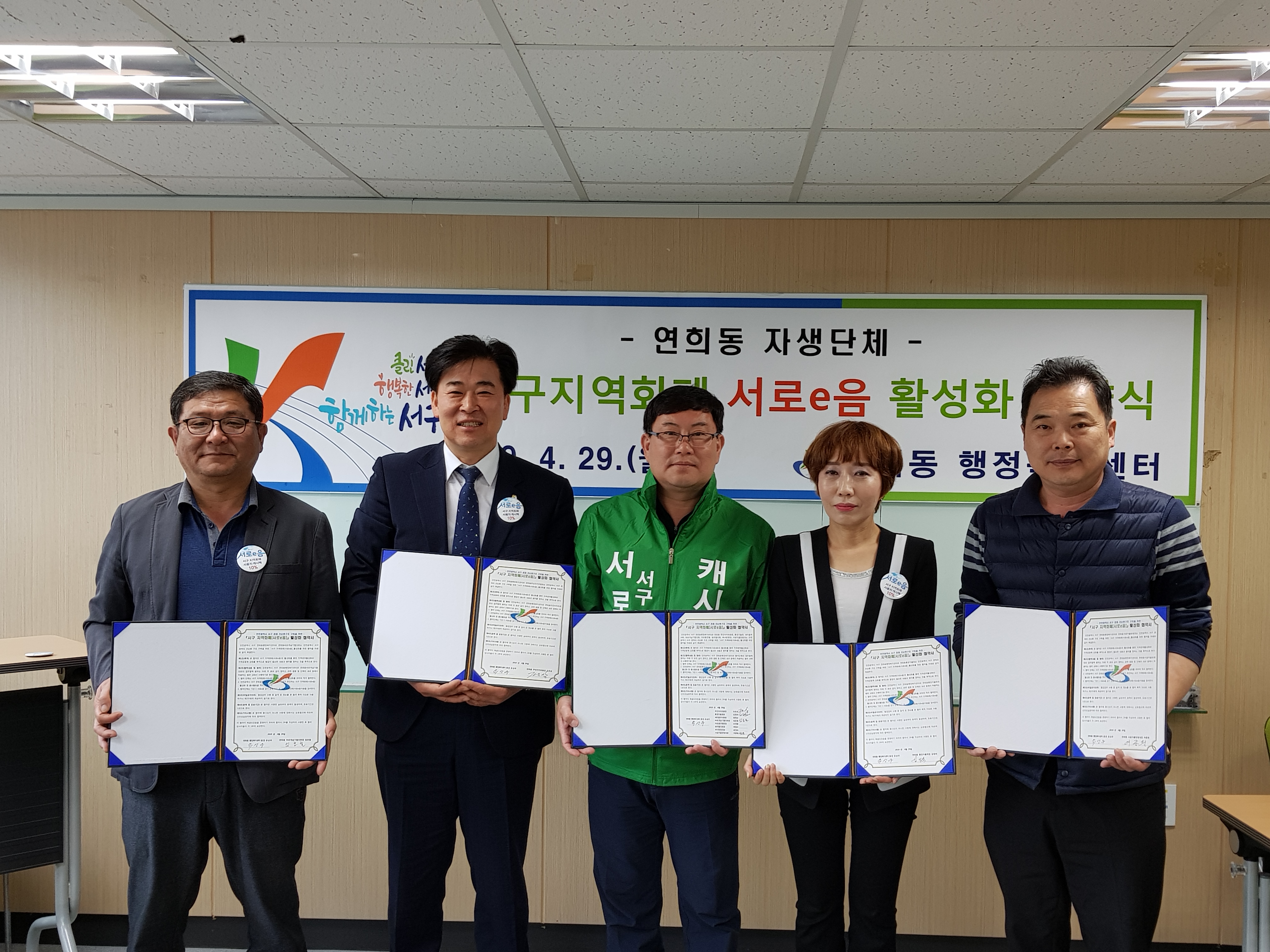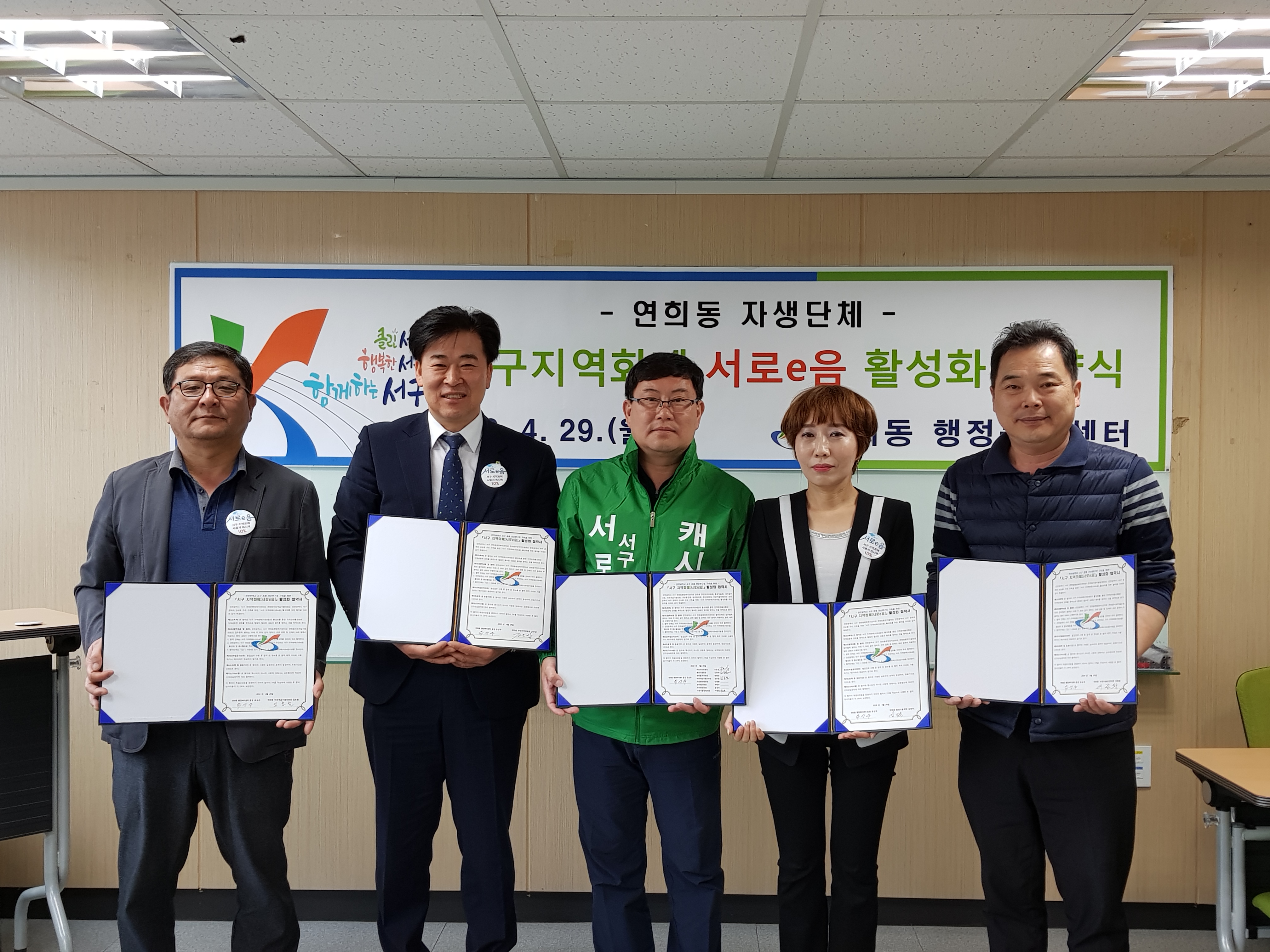 인천광역시 서구 연희동(동장 유상우)은 지난 4월 29일 연희동 행정복지센터와 주민자치위원회(위원장 조은상)등 8개 자생단체와 서구 지역화폐 서로e음(이하 “서로e음”이라 한다) 활성화 협약을 체결하였다.