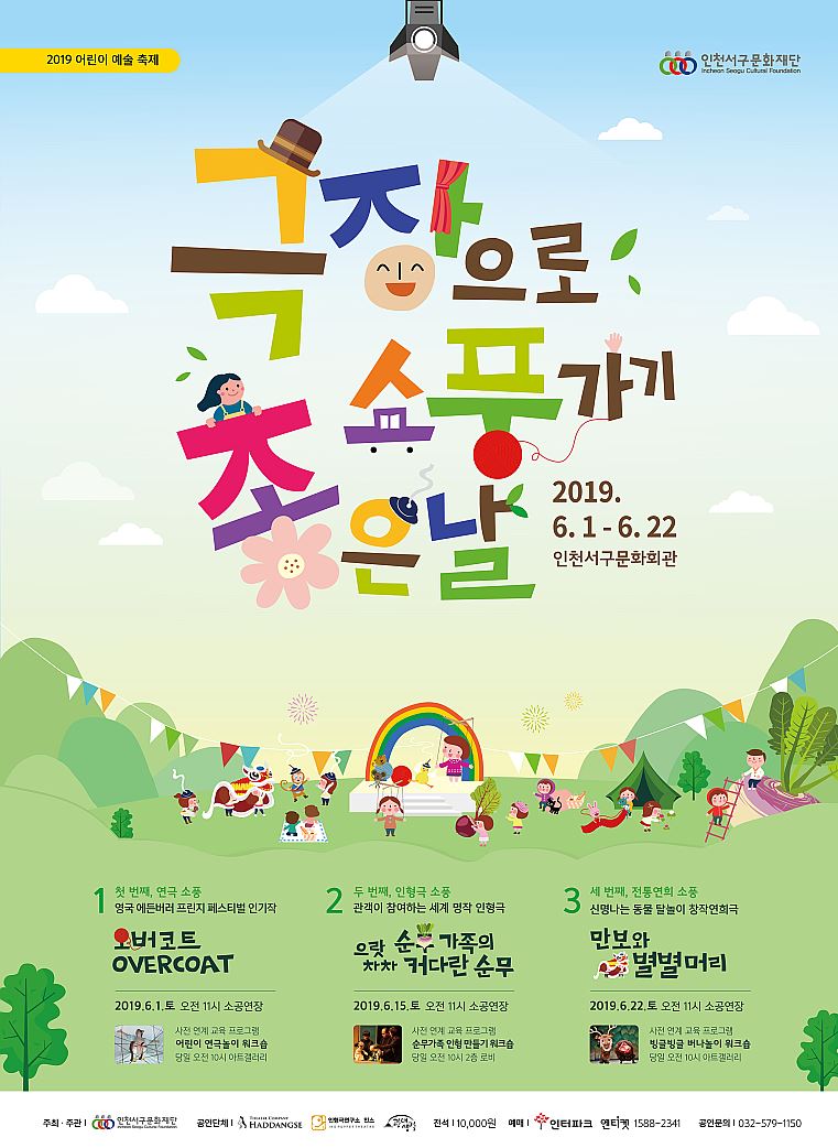 어디로든 떠나기 좋은 계절에 극장에서 가족과 함께 멋진 공연으로 즐기는 소풍을 테마로 한 본 축제는 6월 1일(토)부터 6월 22일(토)까지 인천서구문화회관에서 열린다. 축제에서 관람객들은 어린이 연극, 인형극, 전통연희극 등 다양한 공연 3건과 사전 연계 교육프로그램을 만나볼 수 있다.