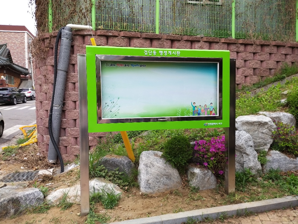 인천 서구 검단동(동장 손진승)은 관내 다세대주택 및 빌라 밀집지역 5개소에 시정 및 구정홍보용 행정게시판을 추가로 설치해 각종 생활정보, 일자리모집, 축제나 행사등을 좀 더 가깝게 주민에게 전할 수 있게 됐다.