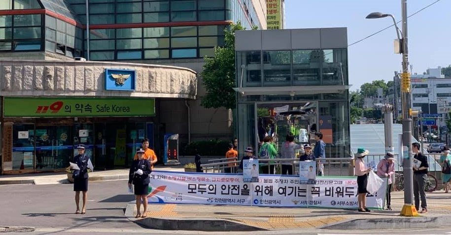 이번 캠페인에는 서구청, 인천시, 인천녹색어머니연합회, 서부경찰서, 서부소방서 등 80여명이 참석한 가운데 안전신문고앱을 통한 주민신고제 포스터와 선진 교통문화질서 지키기 홍보물을 서구청역을 이용하는 주민과 상인에게 배부하는 방식으로 진행됐다.