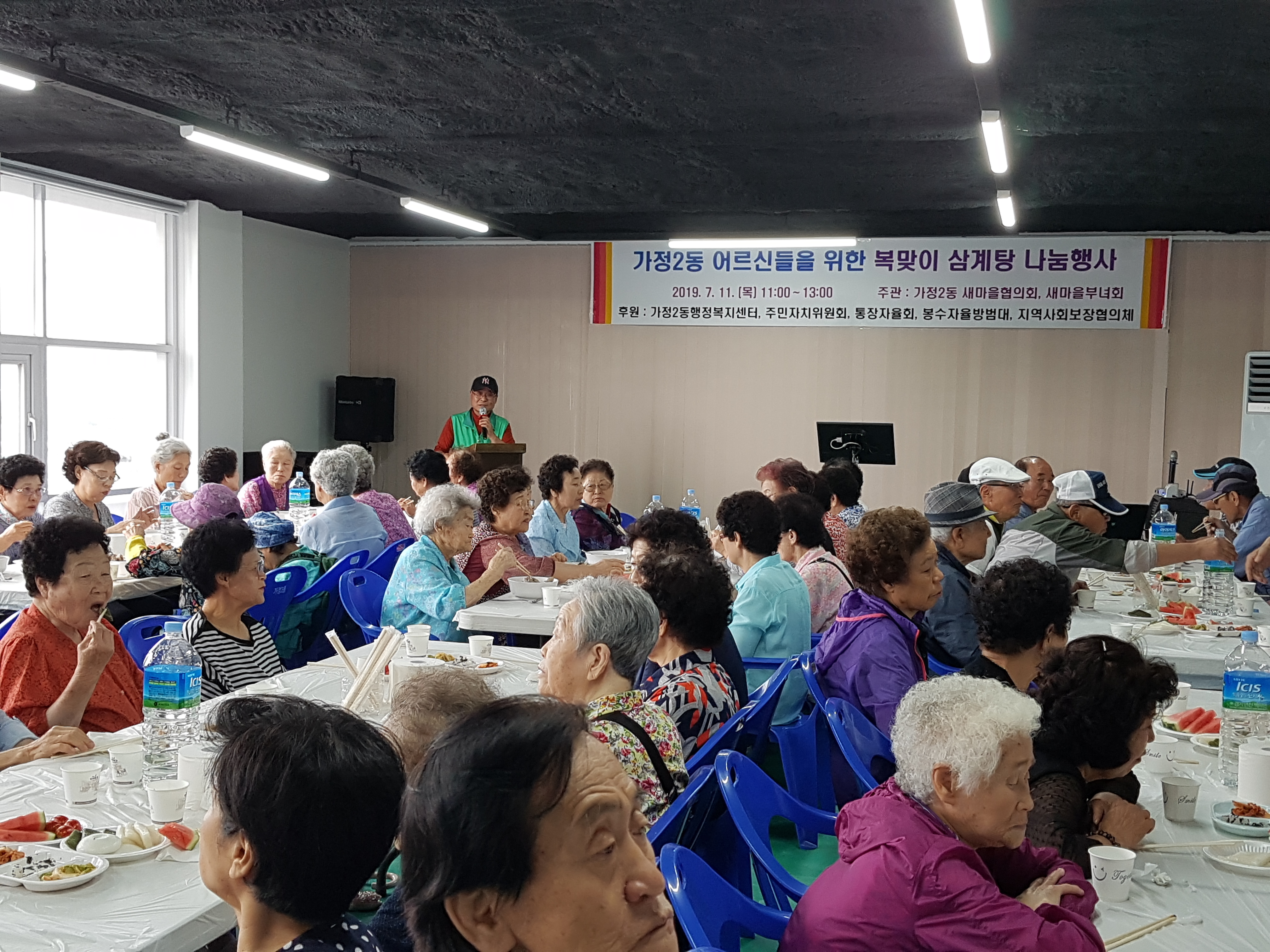 인천 서구 가정2동 새마을협의회·부녀회(회장 김창영, 권혜옥)에서는 지난 7월 11일(목) 가정2동 행정복지센터에서 동네 어르신 150여명을 모시고 『초복맞이 어르신 삼계탕 나눔 행사』를 가졌다.