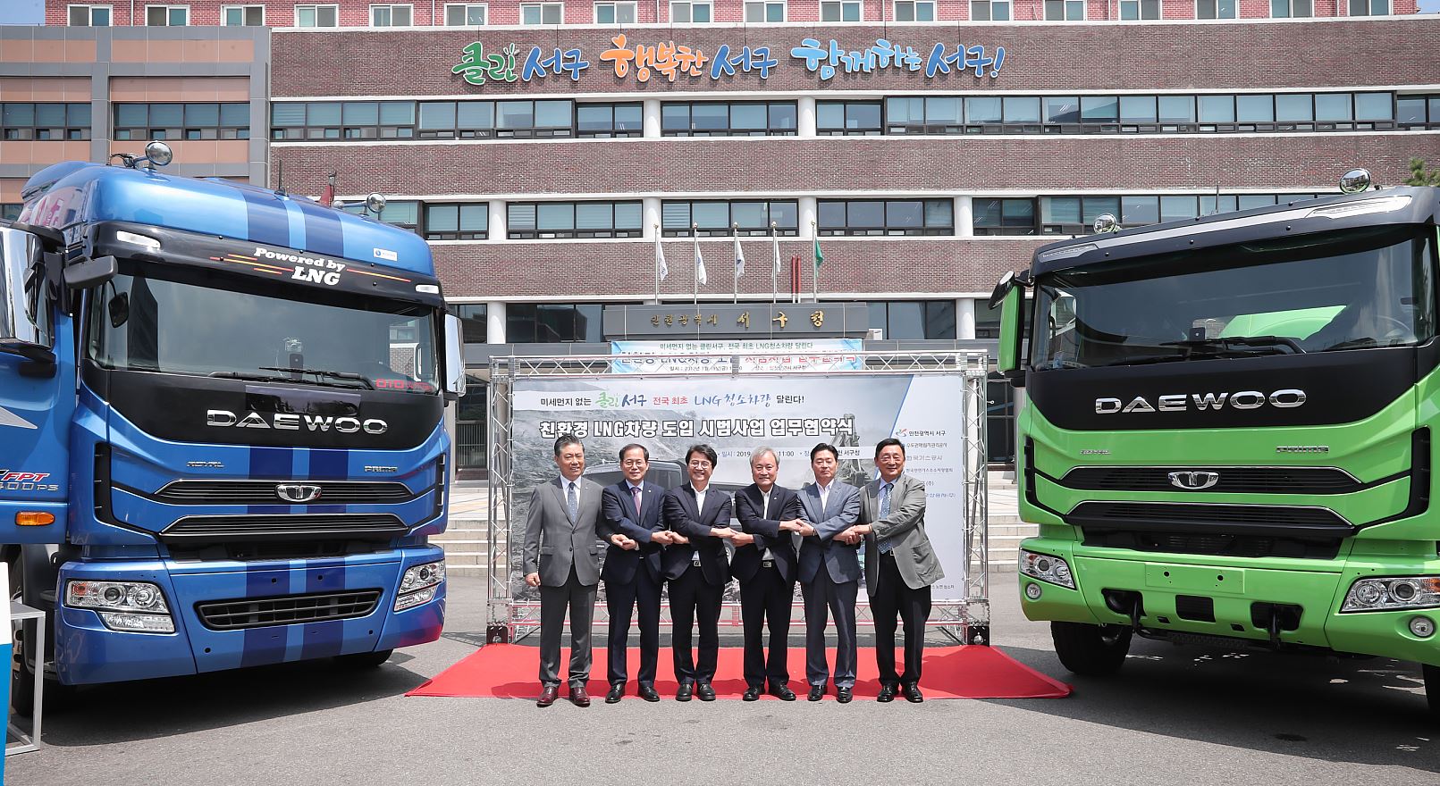 인천 서구(구청장 이재현)는 한국가스공사, 수도권매립지관리공사, 유진초저온, 타타대우상용차, 한국천연가스수소차량협회와 청소차 및 믹서트럭의 LNG 차량 개발 및 보급에 협력하기로 하고, 19일 서구청에서 수도권매립지 쓰레기운반차 등 친환경 LNG차량 도입 시범사업협약을 체결했다.