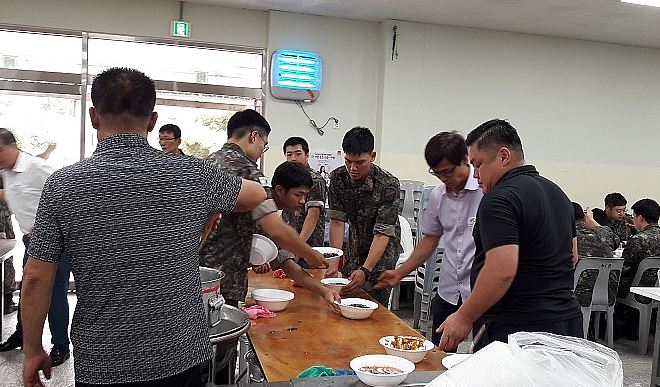 이날 아침부터 예비군 훈련 등으로 구슬땀을 흘린 군 장병들은 오랜만에 서구통합방위협의회 위원들이 준비한 자장면과 탕수육을 맛있게 먹었다.