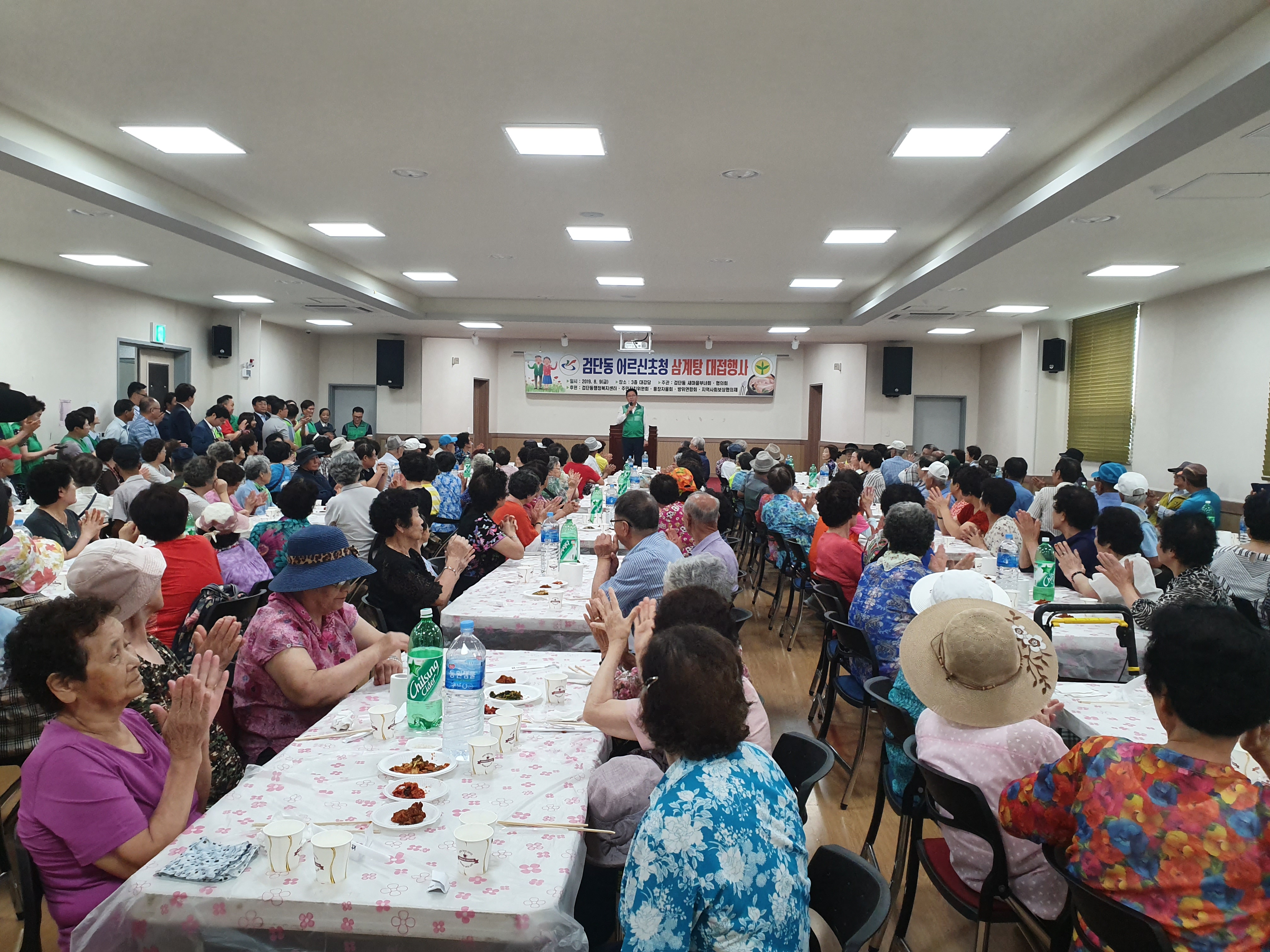 지난 8월 9일(금) 인천 서구 검단동 자생단체 새마을부녀회(회장 조병인), 새마을협의회(회장 김진옥)에서는 검단동행정복지센터 3층 대강당 및 대회의실에서 관내 거주하시는 어르신 약 400여명을 초청한 가운데 어르신들이 건강한 여름을 나시길 기원하며,『검단동 새마을부녀회·협의회 복맞이 삼계탕 대접행사』를 개최하였다.