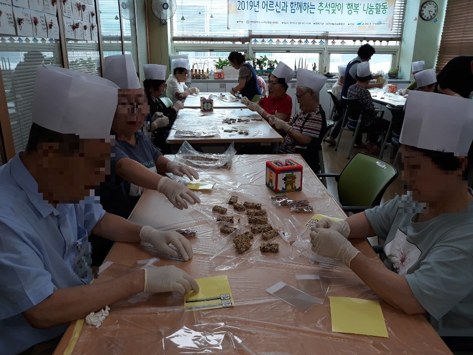 공항철도주식회사 후원으로 진행된 이번 활동은 서구치매안심돌봄터 어르신 30명과 인천보건고등학교 동아리 학생들이 함께 모여 담소도 나누고 강정과 송편을 직접 만들어 포장하는 과정을 통해 누군가에게 선물하는 기쁨을 느낄 수 있는 시간이 됐다.