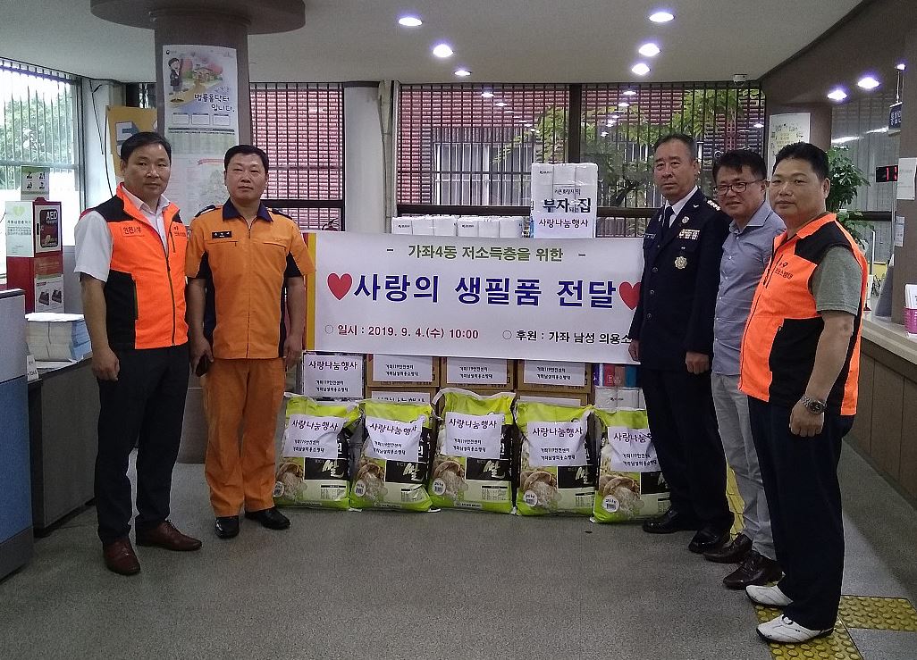 인천 서구 가좌 남성의용소방대(대장 한기복) 일동은 지난 4일, 추석을 맞이해 생필품(라면, 쌀, 휴지)을 가좌4동 저소득가정 5가구에 전달했다.하였다.