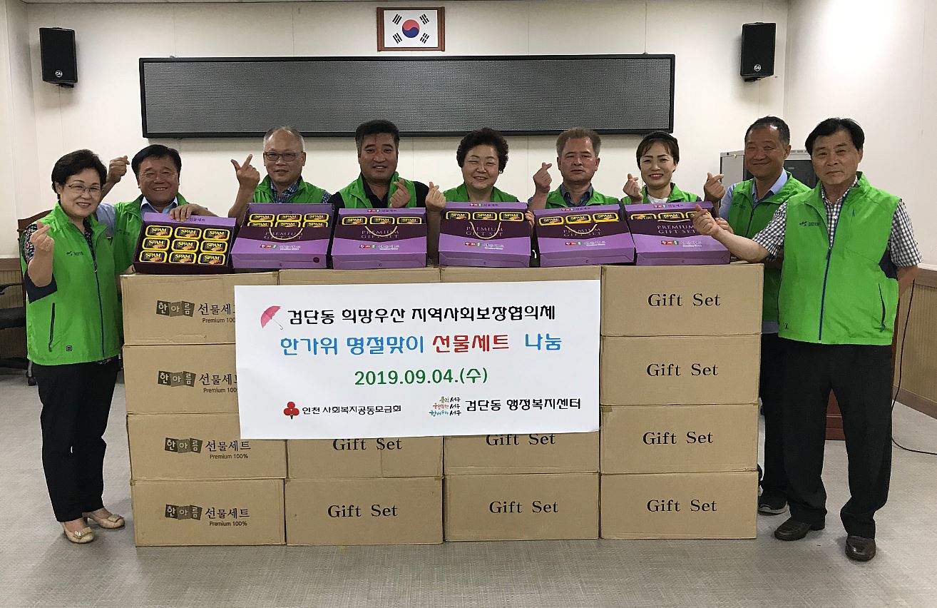 이번 사업은 추석 명절 연휴 전인 11일까지 진행되며, 검단동 관내 생계급여 수급자 400여 세대를 대상으로 800만원 상당의 명절 선물세트를 배부할 예정이다.