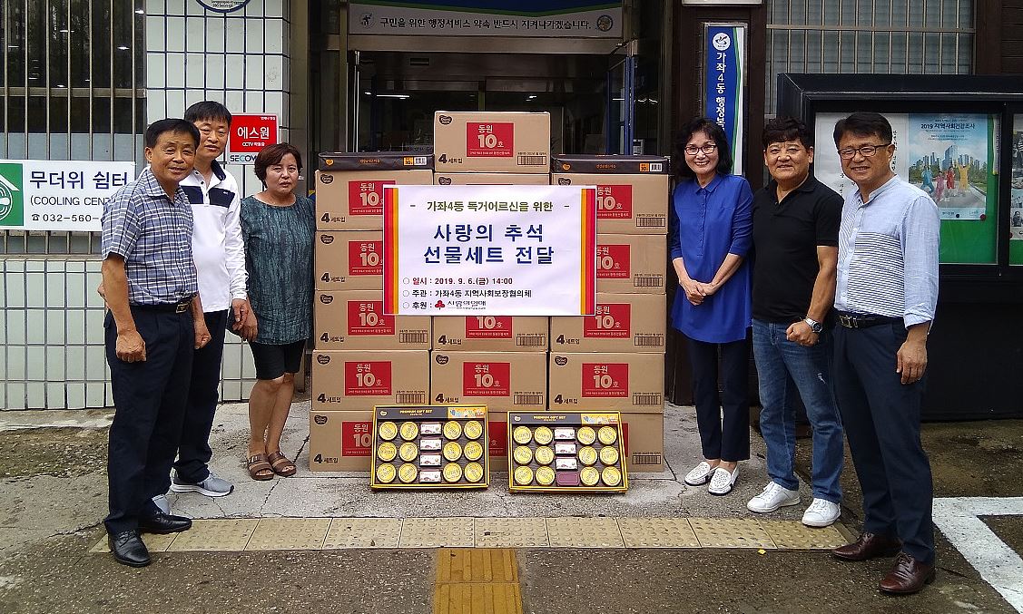 가좌4동지역사회보장협의체(민간 위원장 : 김종영) 지난 6일(금)에 추석 맞이 선물세트를 독거어르신 69가구에 전달하였다.