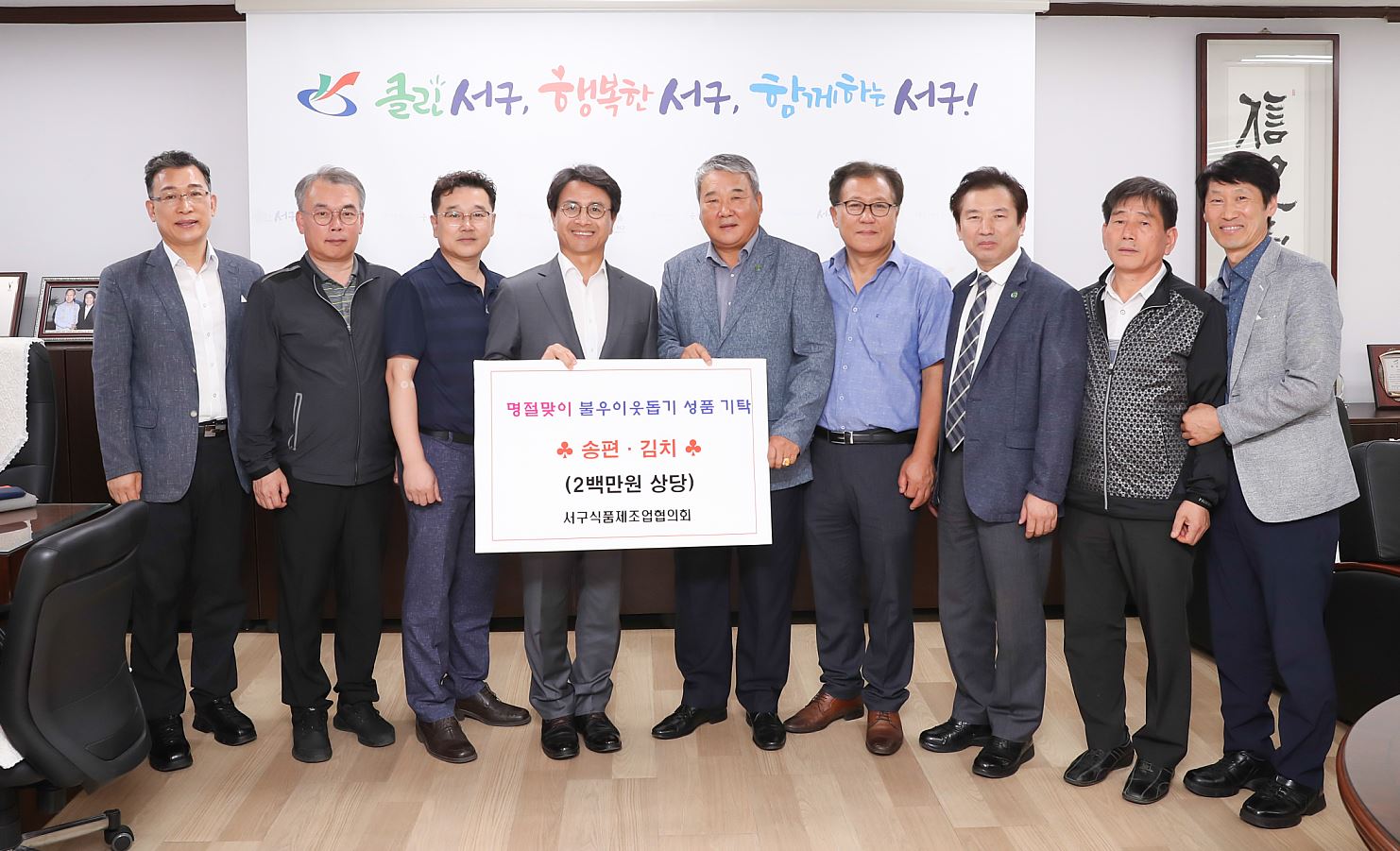 이재현 서구청장은 “어려운 경제여건 속에서도 민족 대 명절을 맞이해 외로운 이웃을 위해 성품을 기부해 주셔서 진심으로 감사하고, 또한 식품제조 기업인이 식품제조 활동에 어려움이 없도록 행정적 지원을 아끼지 않겠다”고 전했다.