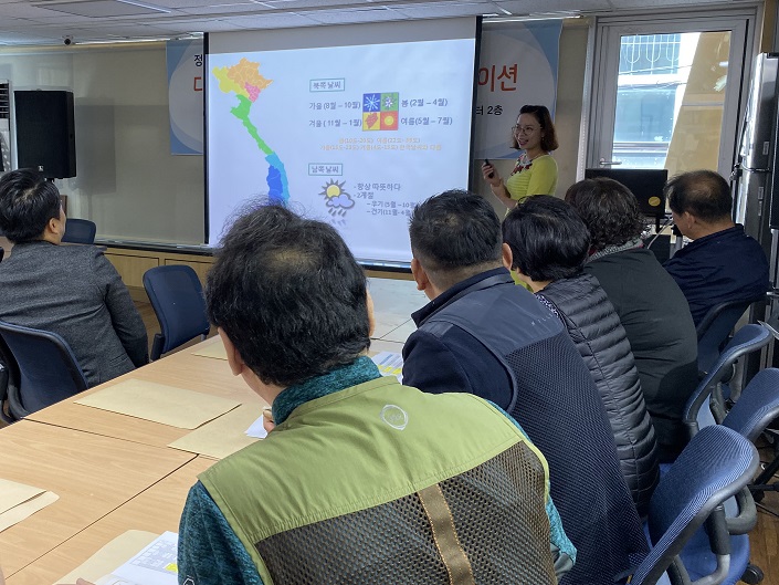 이날 오전 11시에 정서진중앙시장 고객센터 2층에서 열린 오리엔테이션에는 김해영 정서진중앙시장상인회장과 상인, 문화관광형시장 육성사업단원, 서구다문화가족지원센터 다문화강사와 실무진이 참석해 사업 목적과 추진과정 등에 대한 이야기를 나누고, 교육에 활용하고자 사업단과 센터에서 함께 집필한 교재를 나누어 주었다.