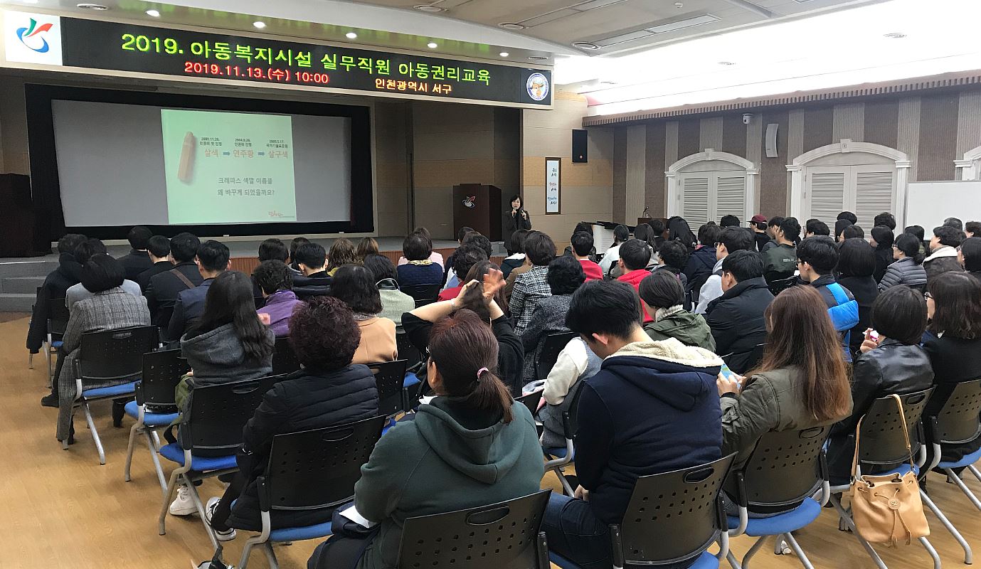 인천 서구(구청장 이재현)는 2019년도 아동복지시설 실무직원을 대상으로 박병은 강사(국가인권위원회 인권 강사, 모든사람 인권교육단체 대표)를 초빙해 지난 13일 ‘아동복지시설에서 인권을 지향하는 방법 찾기’라는 주제로 아동권리 교육을 실시했다.