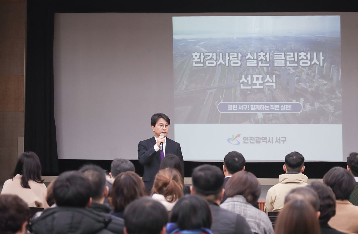 인천 서구(구청장 이재현)는 3일 ‘클린청사 만들기’ 선포식을 갖고 솔선수범하는 자세로 환경사랑을 실천하는 클린서구를 다짐했다고 밝혔다.