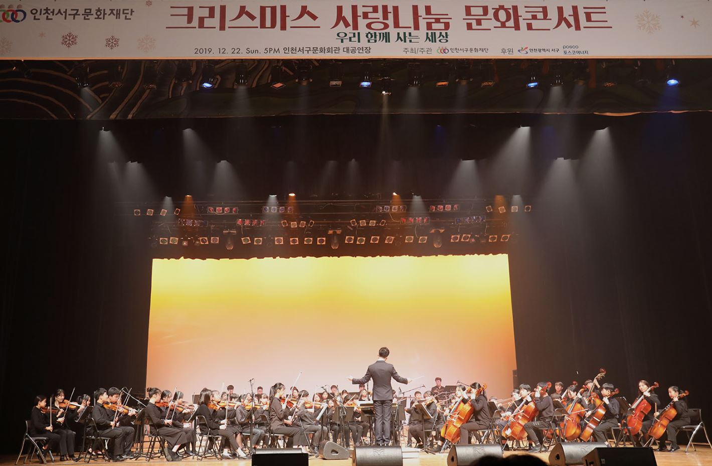지난 22일 성탄절을 맞아 지역 문화소외계층의 행복한 연말을 위해 열린 콘서트에서는 지역 청소년 오케스트라와 뮤지컬 배우들이 출연하여 서구문화회관을 뜨겁게 달궜다.