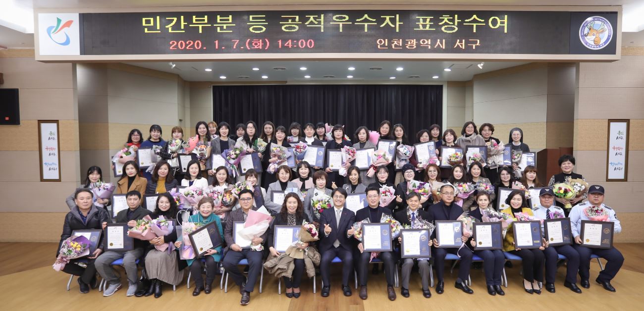 인천 서구(구청장 이재현)는 지난 7일 구청 대회의실에서 민간부문 등 표창대상자 60여명과 여러 축하객들이 참석한 가운데 일괄 수여식을 진행했다고 밝혔다.