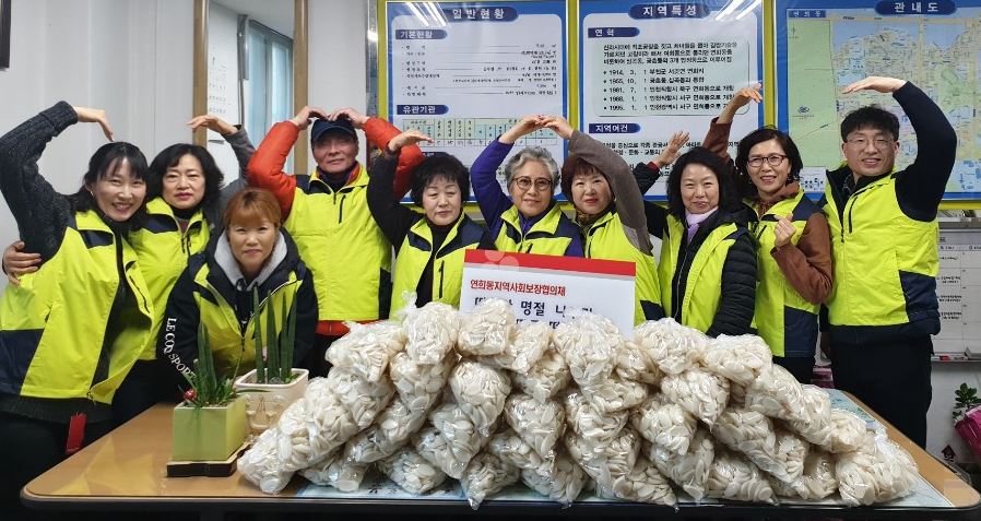 인천시 서구 연희동 지역사회보장협의체(동장 고문채, 민간위원장 강석봉)는 지난 21일 인천사회복지공동모금회와 함께 ‘따뜻한 명절 따뜻한 나눔’ 행사로 ‘저소득층 떡국 떡 나눔 행사’를 개최했다.