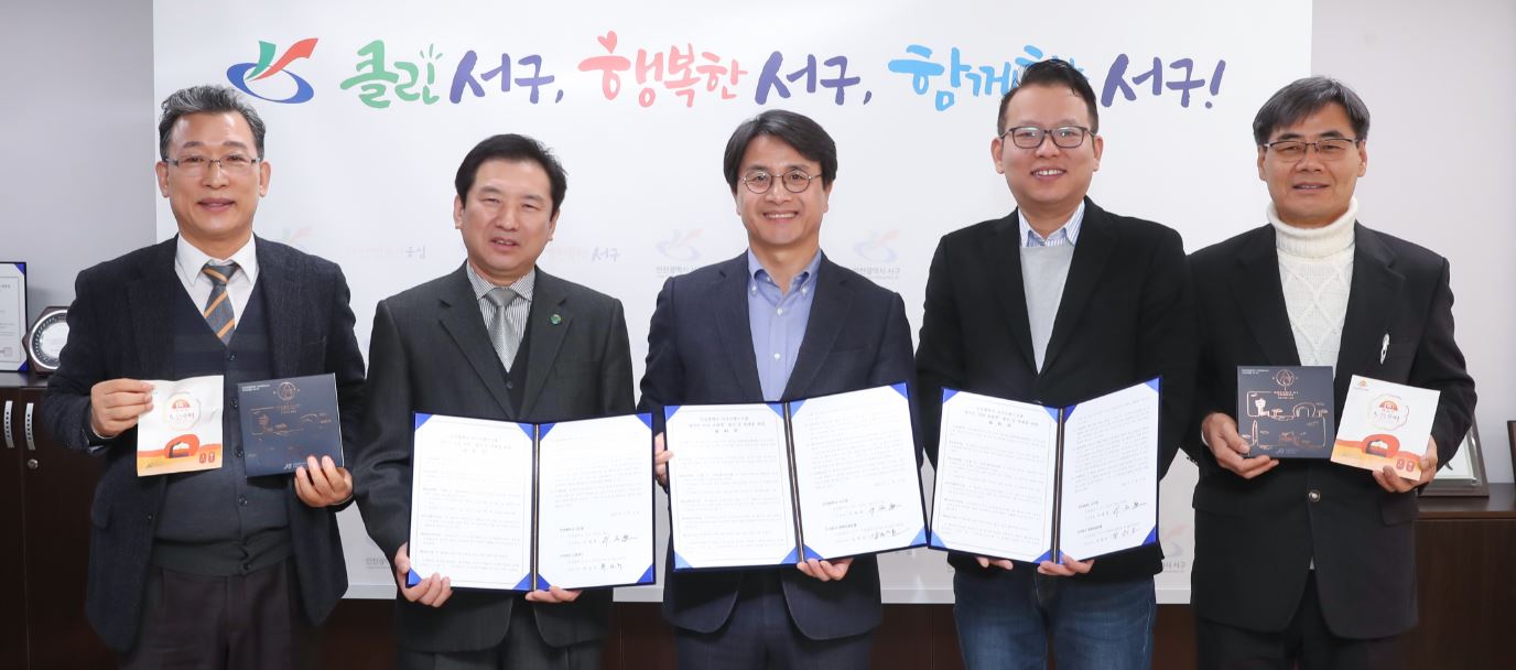 서구(구청장 이재현)는 지난 5일 관내 식품업체인 ㈜디앤푸드, ㈜피케이글로벌과 ‘인천광역시 서구 브랜드식품의 생산 및 판매를 위한 협약’을 체결했다. 두 업체는 지난 해 12월 서구 브랜드식품 개발업체로 선정됐다.
