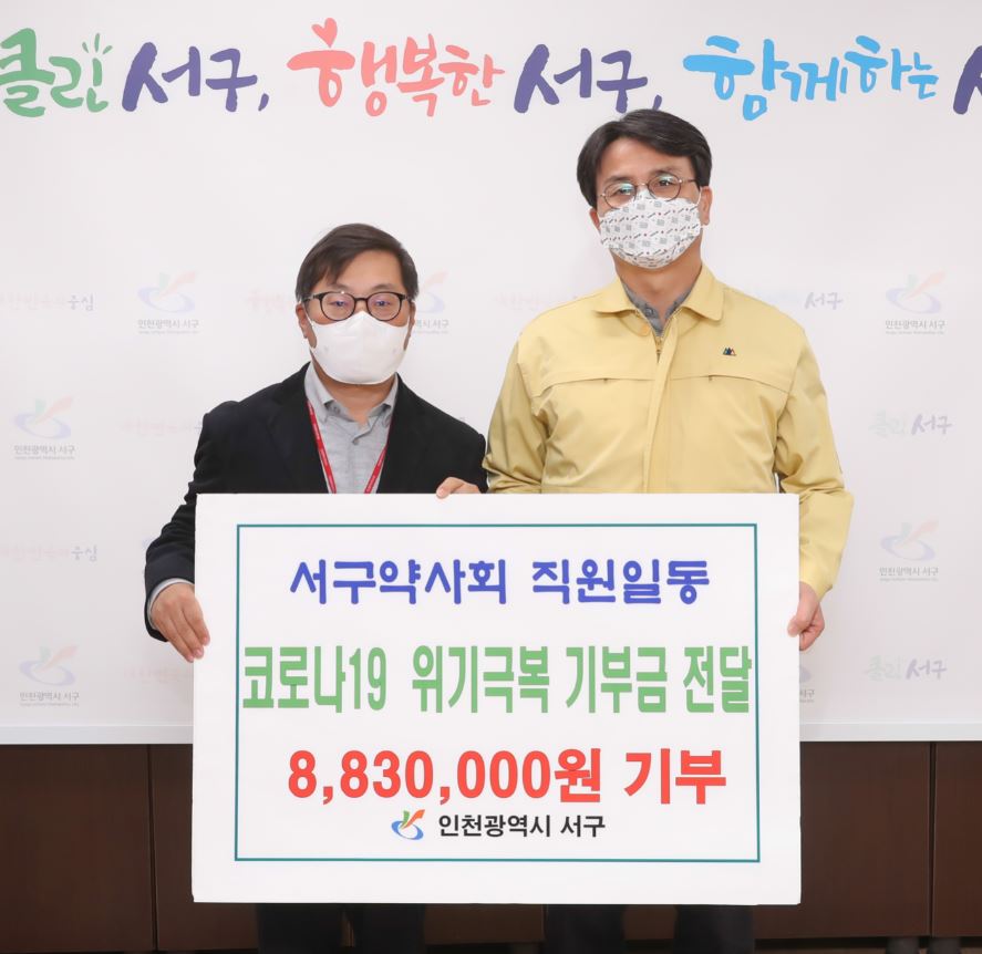 인천 서구(구청장 이재현)는 지난 7일 서구약사회 직원 일동이 코로나19 예방 및 확산 방지를 위한 기부행렬에 동참했다고 밝혔다.