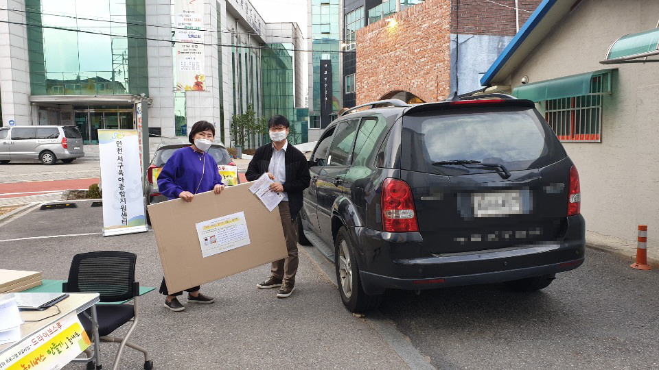 인천서구 육아종합지원센터(센터장 오선영, 이하 육아종)는 지난달 31일 코로나19 감염 우려로 가정에서 생활하고 있는 영유아와 부모님을 위해 ‘드라이브스루’ 방식을 활용해 ‘뛰뛰빵빵 놀이버스 만들기’ 놀이 키트 70개를 지원했다고 5일 밝혔다.