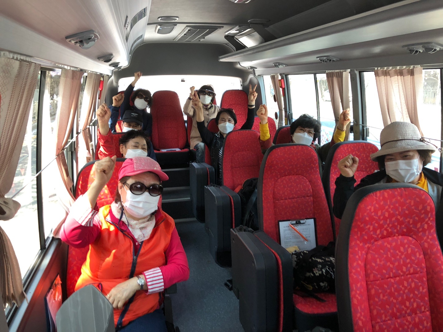 어르신들이 차 안에서 마스크 착용을 의무화하고, 손 소독과 발열 체크, 거리 유지를 지키며 착석 등 방역지침을 준수하면서 셔틀버스 안에서만 벚꽃을 구경하는 비대면 특화 사업이다.