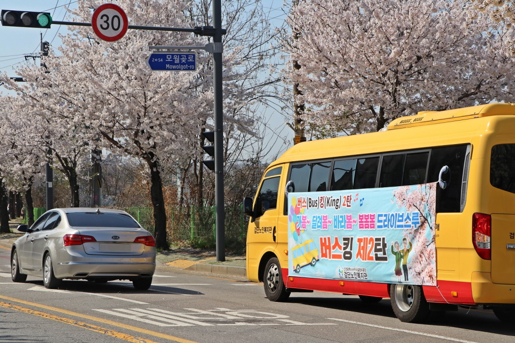 ‘봄·봄·봄 드라이브스루 버스(bus)킹’은 코로나19 장기화로 긴 시간 실내생활이 이어져 지역 어르신들이 느낄 수 있는 우울감이나 무기력감을 봄바람에 실어 보내고자, 복지관 셔틀버스를 이용해 관내 아라뱃길 벚꽃길과 드림파크 벚꽃길 등을 구경하는 방식으로 이뤄진다.