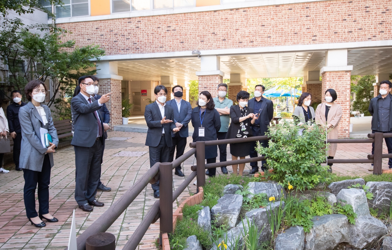 이어 학생들의 생태환경교육 활동공간으로 활용될 학교 생태 연못 현장을 둘러보며, 서구의 환경교육에 대해 논의하는 시간을 가졌다.