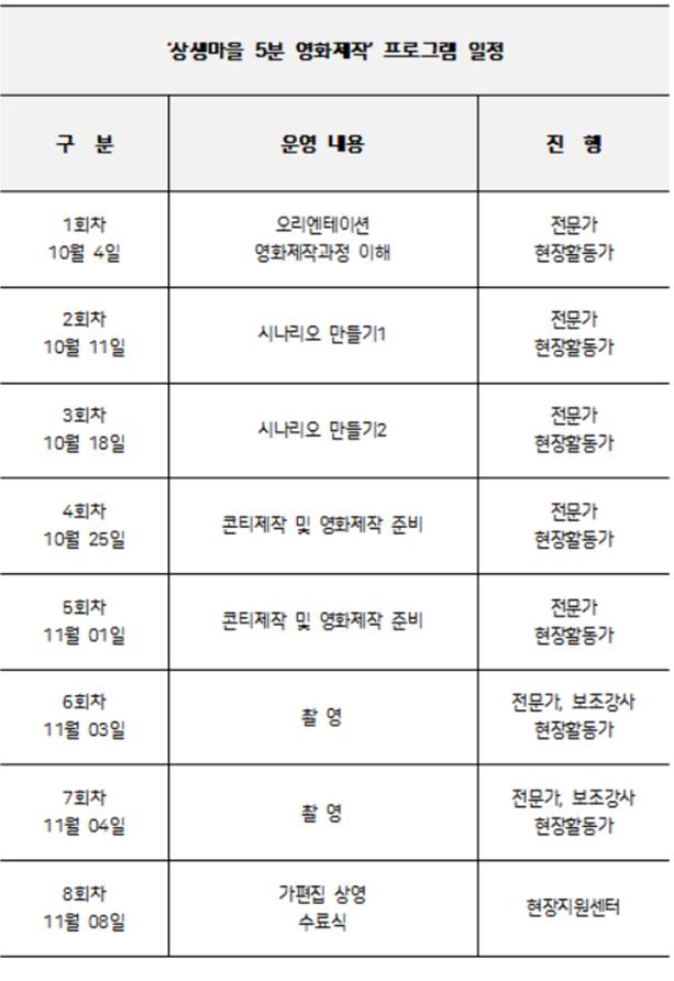 또한 주민들이 직접 만든 ‘5분 마을 영화’는 오는 11월 진행되는 ‘야외 영화 상영’ 행사에서 함께 상영된다.