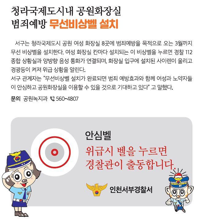 청라국제도시내 공원화장실 범죄예방 무선비상벨 설치 외
