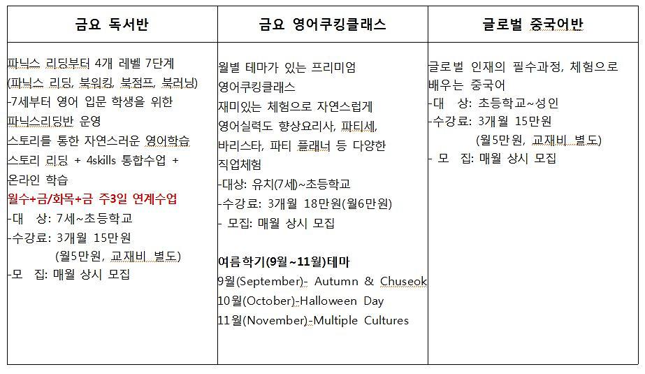 ● 서구영어마을GEC 금요 프로그램 안내