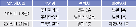 ▶ 청사 재배치 현황 및 업무개시일 안내