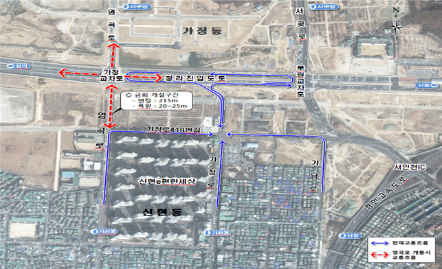 또한 출퇴근 시간대 가정로만 이용하던 차량의 염곡로 분산효과를 감안할 경우 가정동 일대 교통흐름이 대폭 개선될 것으로 기대하고 있다.