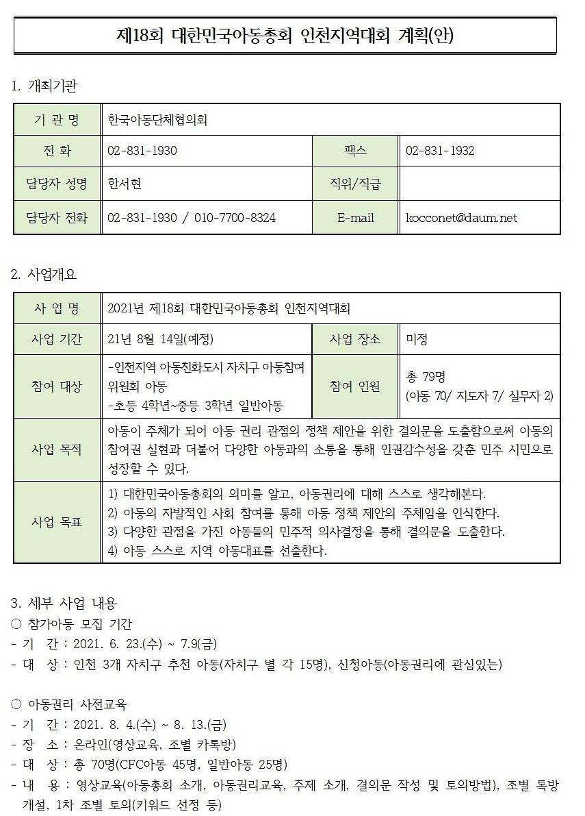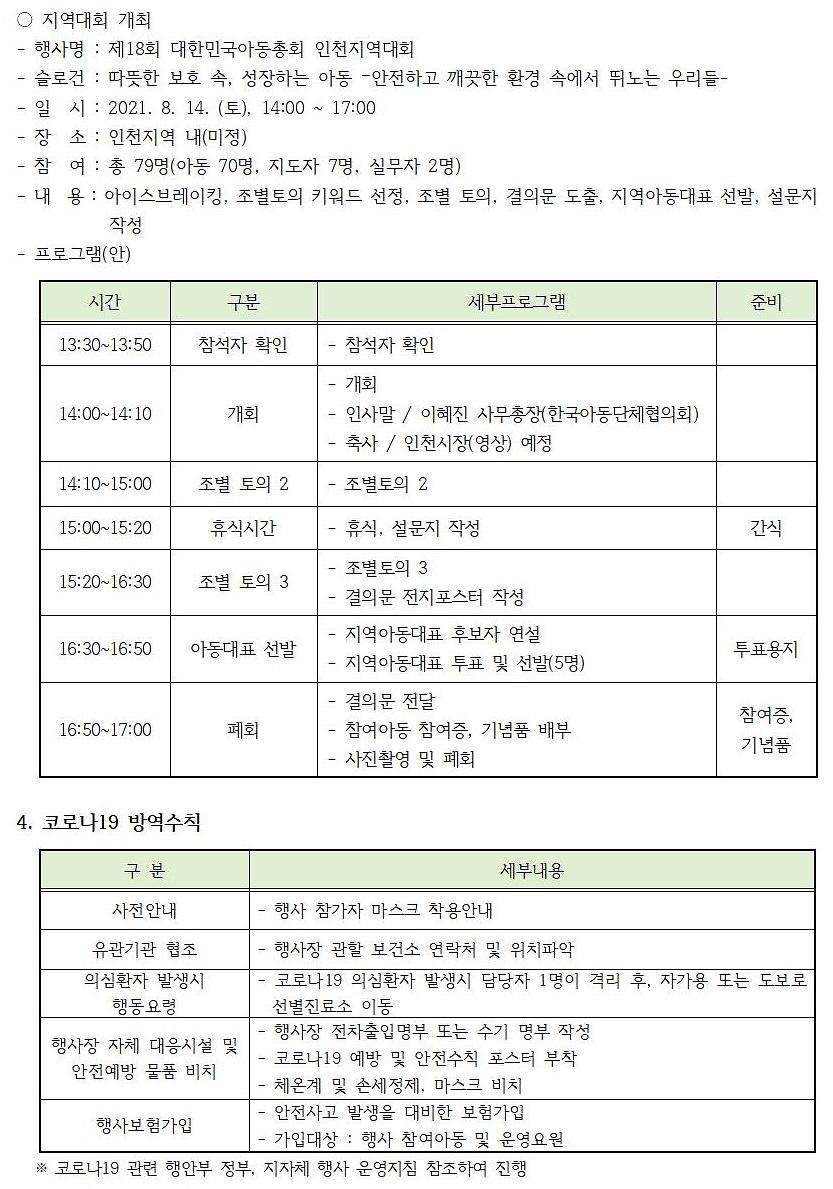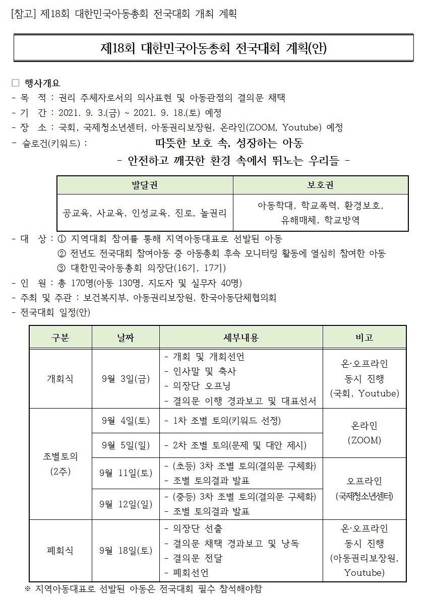| 프로그램명 | 제18회 대한민국아동총회 개최에 따른 참여자 모집 안내 |