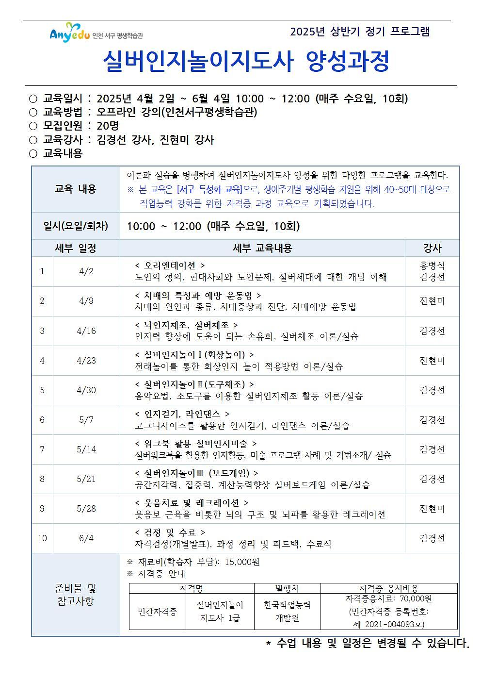 (자격증과정) 실버인지놀이지도사 양성과정