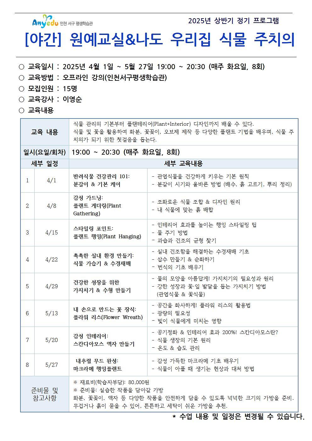 [야간] 원예교실&나도 우리집 식물 주치의