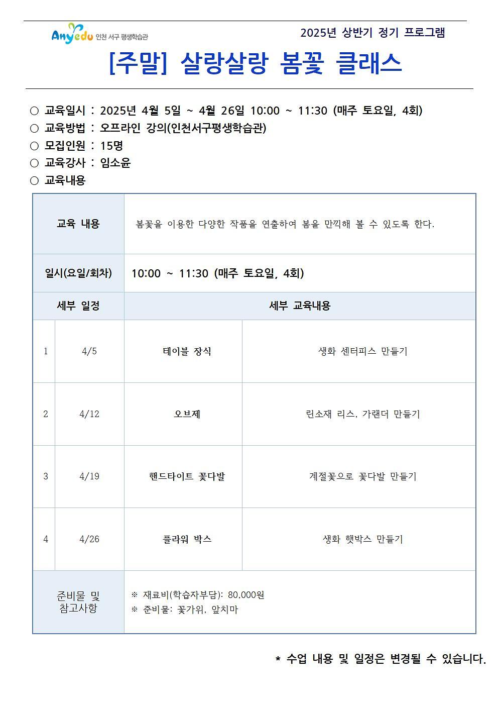 [주말] 살랑살랑 봄꽃 클래스